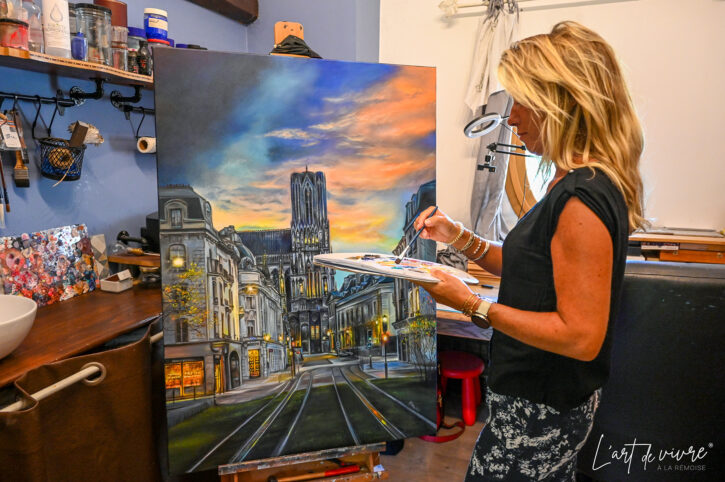 Helen Barenton est une artiste discrète. J’ai découvert son travail au hasard des réseaux sociaux. Vues de Reims et de sa cathédrale, scènes de vie des années folles, ambiances Art Déco… il n’en fallait pas plus pour attirer mon attention. Helen a accepté de me rencontrer, voici son portrait