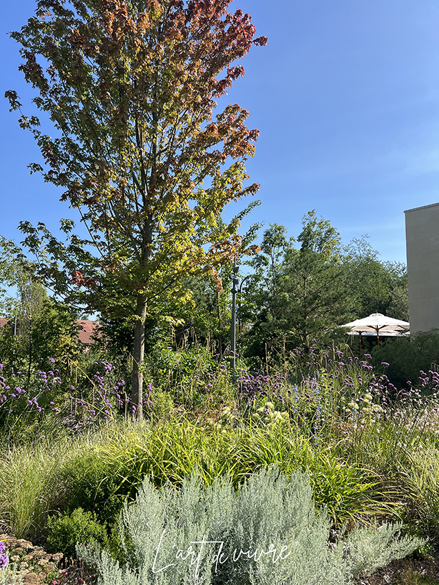 Tout autour s’offrent à nous, et à l’accès complètement libre gratuit, de superbes jardins nichés dans un espace boisé de plus de 5000 mètres carrés. L’architecte Paysagiste Christophe Gautrand a pris soin de privilégier une grande variété d’espèces qui forment un ensemble, particulièrement harmonieux où règne un calme souverain, propice à la contemplation des œuvres d’art contemporaines qui le peuple. C’est un véritable plaisir que de déambuler dans ces jardins et de se laisser surprendre par des œuvres crées par des artistes de renommée internationale.