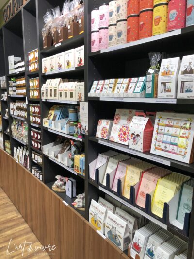 On y trouve les chocolats belges Dolfin ou les gourmandises de la Maison Guinguet, les confitures signées Les Papas Confituriers avec leurs créations parfois « décalées », les confitures Lait Douceur de Normandie- St Sauveur Le Vicomte – Cotentin ainsi que les pâtisseries de la Maison Toussaint. Vous y trouverez aussi des Kombucha BIO et les jus de fruits made in Togo par hug’s ( le jus Gingembre est ultra costaud mais j’adore !). Coté salé une belle sélection de produits locaux ( les vérines de Picardie Venaison) et bios.