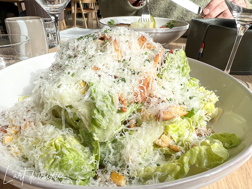 Nous avons testé la salade Caesar, pleine de fraicheur et de ( beaucoup) de salades.