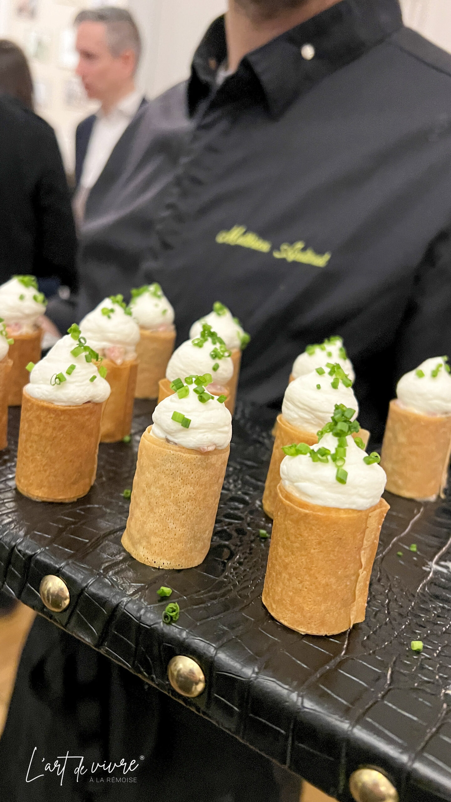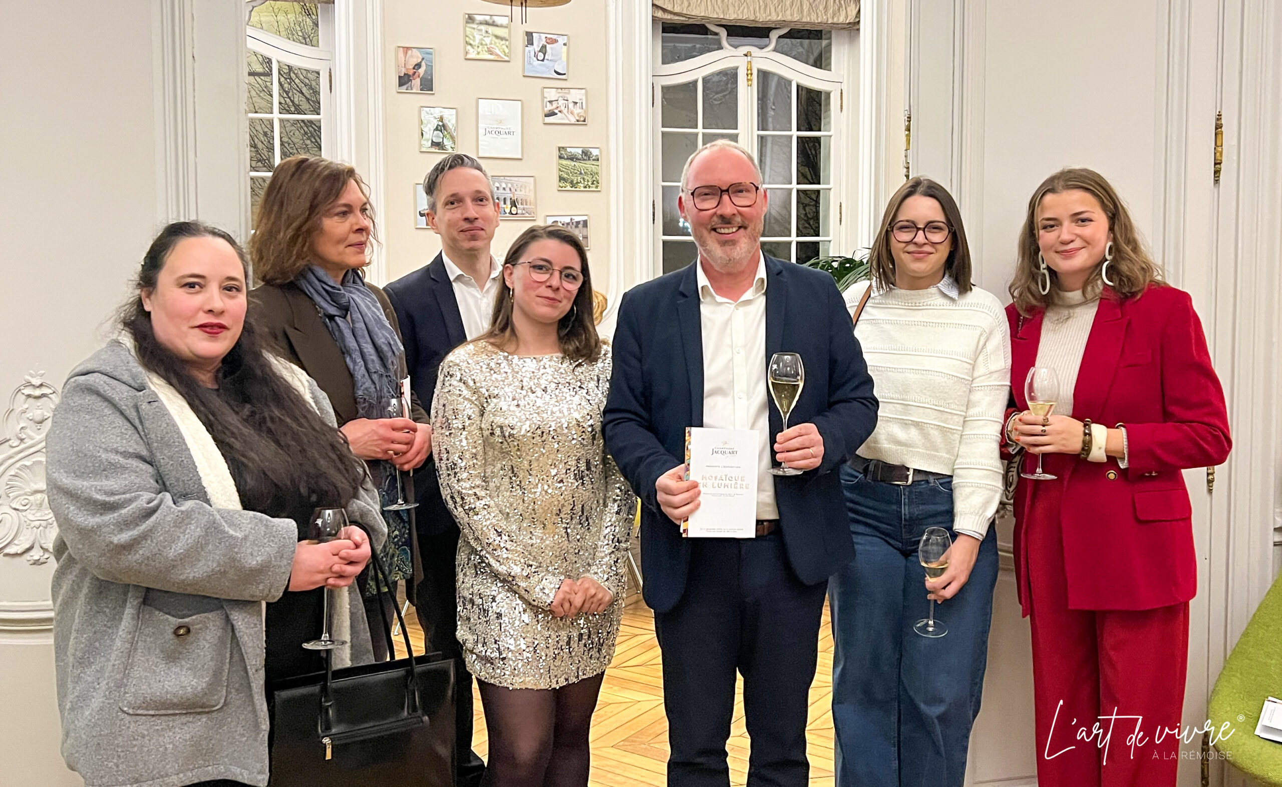 Le vernissage de l’événement avait lieu le 3 décembre et nous avons pu célébrer l’événement en présence d’une partie des artistes en dégustant la cuvée  » signature » de la Maison Jacquart. Mathieu Audinot, dans ses habits de traiteur, nous a servi de succulentes petites gourmandises d’une incroyable créativité.