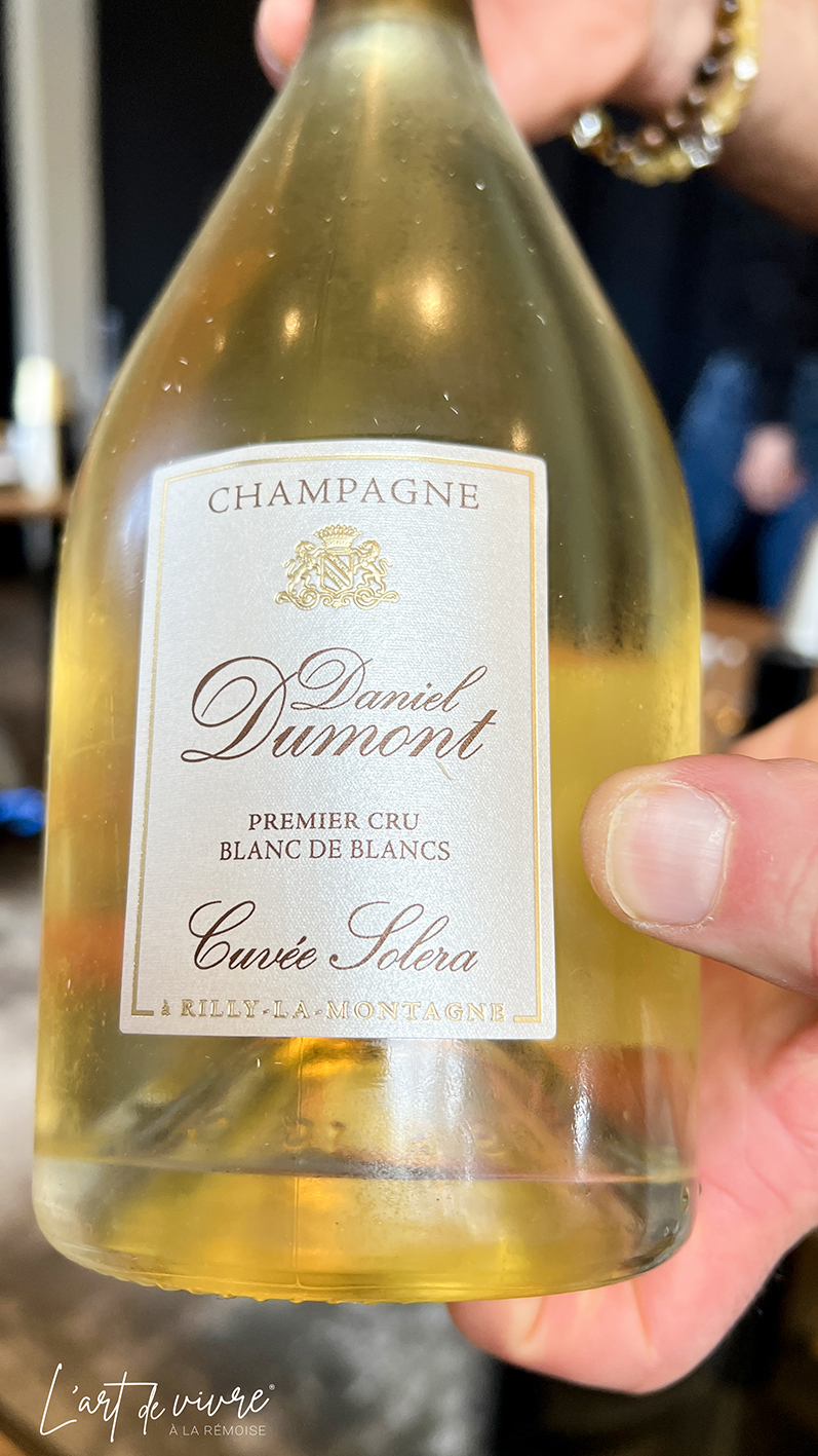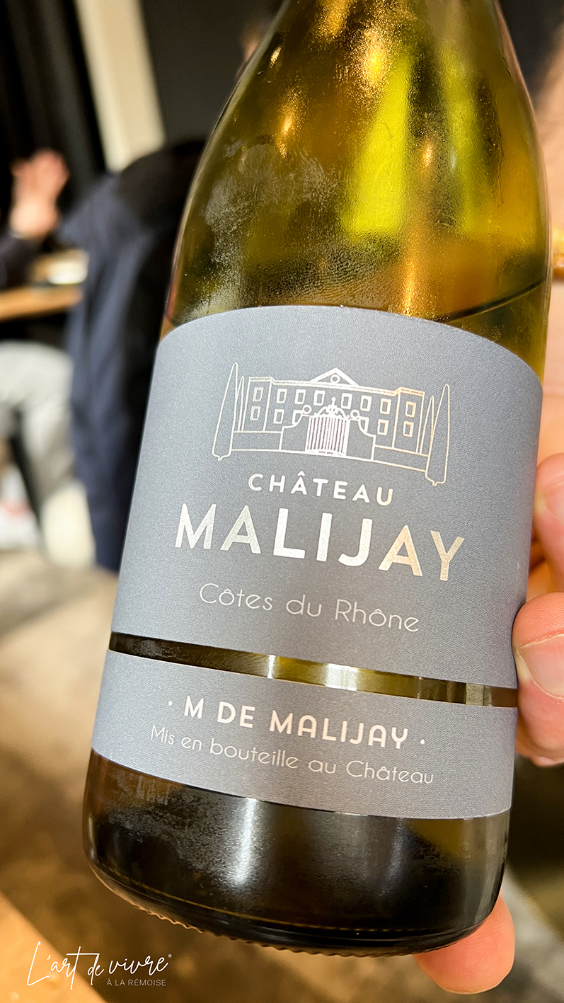 Pour l’apéritif, nous avons opté pour une cuvée « Soléra » de la Maison Dumont (10,50 €), une cuvée rare, surtout à ce tarif. Pour accompagner les plats, le serveur a eu l’excellente idée de nous proposer un côte-du-rhône blanc, qui s’accordait parfaitement avec la tonalité charnue des assiettes.