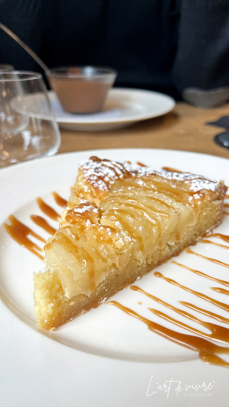 En dessert, une amandine maison : une belle part fondante, sucrée juste ce qu’il faut.