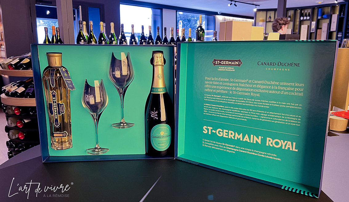 Ce coffret exclusif est en édition limitée sur les boutiques en ligne St-Germain®, Canard-Duchêne et sur le site Vinatis mais aussi dans les boutiques PAPAVERO de Reims ( notamment dans la boutique Rue gerbert à Reims – voir photo)